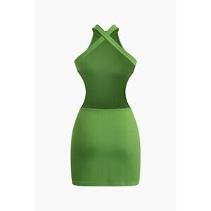 Micas Green Cross Backless Mock Neck Tank Mini Dress Stretch Casual Vacation S