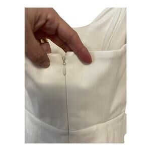 The Michael Costello x REVOLVE Jake Gown in optic white features a bold strapless design crafted from sleek faux leather. Its modern silhouette makes a striking statement, ideal for high-fashion events or edgy, upscale occasions.