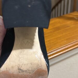 Step out in style with these elegant black suede ankle boots. Featuring a chic studded heel, these boots add a touch of glamour to any outfit. Perfect for both casual and formal occasions. In used condition. Missing a few studs on the heels. See pics. There are a couple of spots of white, possibly paint near the top rim. May come off; haven’t tried. Not very noticeable. High quality craftsmanship. Size 7. Very cute with jeans or dressy clothes.