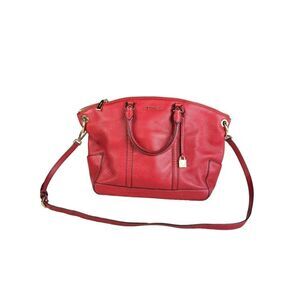 Michael Kors Beckett Large Leather Satchel Handbag Burnt Red Pebble Grain in great pre-owned condition. No rips or tears, almost like new. Marked on the inside shown in the photo.