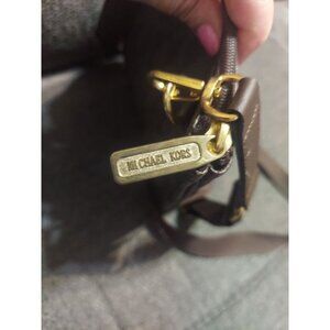 The Michael Kors Briley Small Women's Messenger Crossbody Bag in brown canvas with a black strap is a stylish and versatile accessory for women on-the-go. This small crossbody bag features a zip and snap closure, a lined interior with adjustable strap, and multiple pockets for organization. The exterior is made of polyester and canvas with silver hardware, making it perfect for travel or casual outings. The detachable strap adds extra convenience and the iconic Michael Kors logo adds a touch of luxury to this practical yet fashionable handbag.