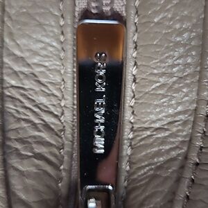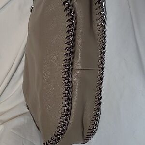 Michael Kors Chelsea Large Shoulder bag made from the luxurious pebbled leather in neutral and versatile taupe color "Dark Dune".  Gorgeous detail work with whipped stitching and chains around the edges of the bag, zippered top and easy accessible magnetic compartment that can hold your phone, tablet or a wallet.  It is elegantly detailed with silver-toned hardware.  This bag is  classy looking, large, and roomy with double chained handles that can convert to a single shoulder strap for versatile carrying options