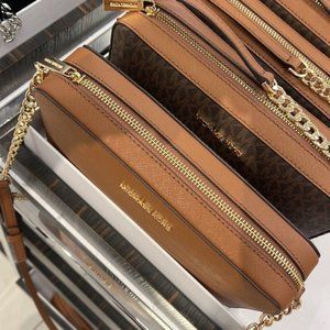 Michael Kors Jet Set Item Large East West Zip Crossbody Leather Luggage