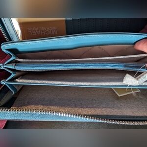 Michael Kors Jet Set Travel Large Continental Leather Wallet Teal (New)