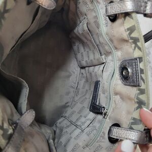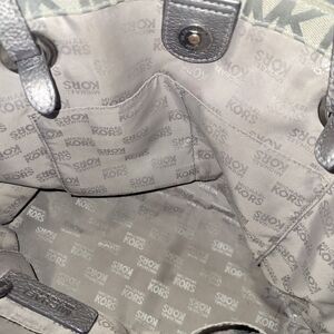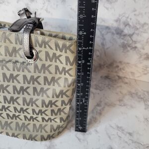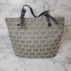 Michael Kors Jet Set Travel Top Zip Signature Monogram Tote Silver Designer