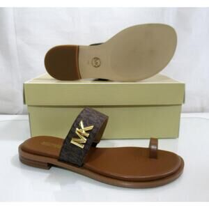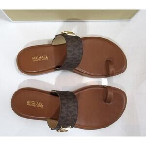 Michael Kors Jilly Thong Flat Sandals Double Strap Brown Multi Size 7.5