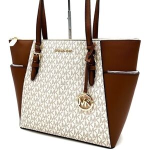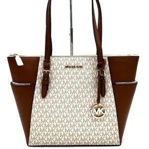 Michael Kors Large Charlotte Tote Bag Leather Vanilla