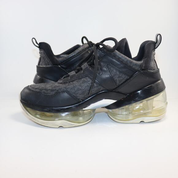 These Michael Kors Olympia trainers are quite heavy! They have a patterned black and gray upper with a clear midsole. The midsole is slightly yellowed.