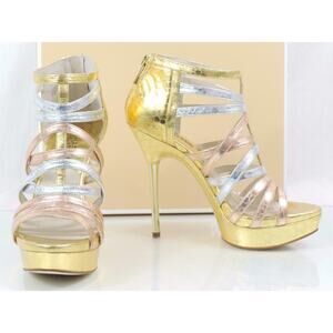 Michael Kors Maddie Dress Platform High Heels Sandals Rose Gold Multi