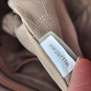 See all pics for wear: light pencil mark on outside Leather. Inside zip pocket has stains