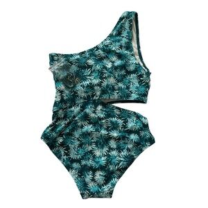 Michael Kors One-Shoulder Aqua Green Leaf Print Swimsuit, size 8