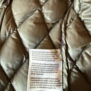 Stylish plum puffer with gold accents. Perfect for chilly days. Lightweight and warm.