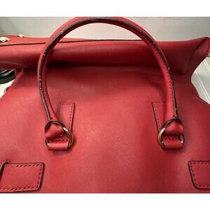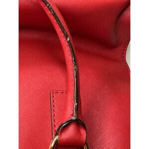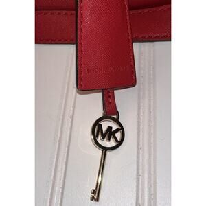 Pre-loved Michael Kors Hamilton North/South Tote Handbag Purse in RED. Some stains on interior lining. No bad smells. Piping on double handles may have been redone at some point (not by me - I’m the 2nd owner). Fully functional and in good overall condition. Minor wear to bottom corners. No major issues. Gold hardware. Lock & key included. Please look closely at all pictures as they are part of the item description. Thanks for looking & happy shopping! 🛍️🛍️🛍️