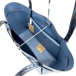 Michael Kors Reed Large Tote Bag Denim Snakeskin Blue