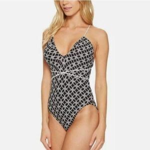 Michael Kors Rope Geo Print Plunging Neckline One-Piece Swimsuit