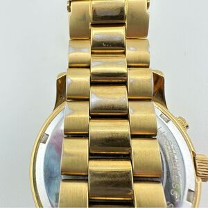 MK gold tone oversized watch. MK 5055. Well taken care of, needs new battery as it’s not running and does have some gold tone loss on the bottom band.
