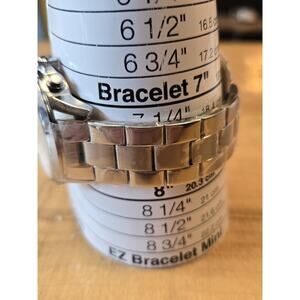 Elegant Michael Kors watch with a silver-tone case and white dial. Features Roman numeral markers and a clear strap.