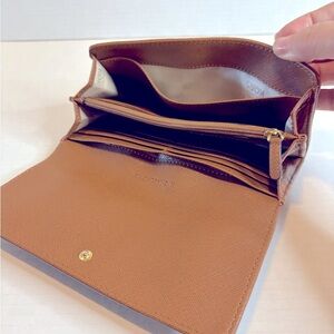 Elegant tan wallet with signature MK logo. Perfect for everyday use.
