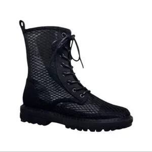 Keywords: Michael Kors glitter boots, silver combat boot, MK Teagan limited edition, metallic lace-up boots, holiday boots, rare designer boot
