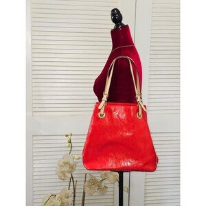 Michael Kors Women's Red Leather Jet Set Mirror Metallic Patent Tote Large 1794