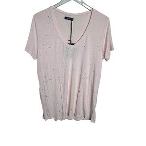 Michael Lauren Pink Distressed Ziggy V Neck Tee size large womens NWT t-shirt