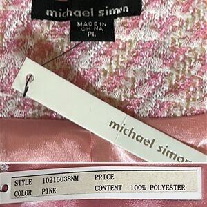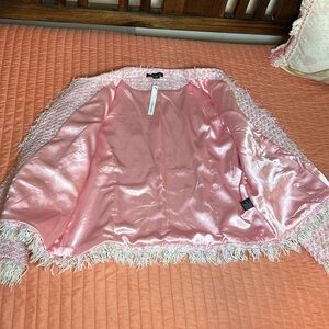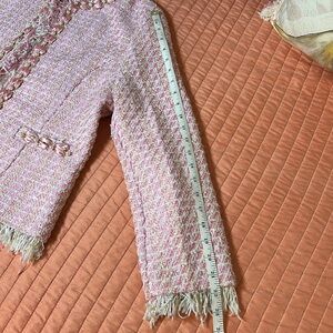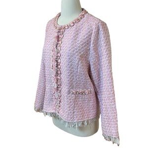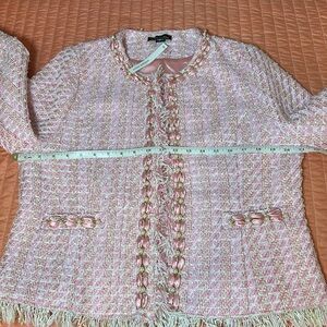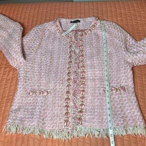 Michael Simon Pink Cream Tweed with Pearl and Gold Details Blazer Jacket size LP