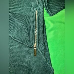 Elegant green sweater featuring a stylish gold zipper. Ideal for versatile wear.