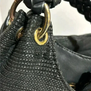 Michael kors black straw shoulder handbag with leather strap & trim