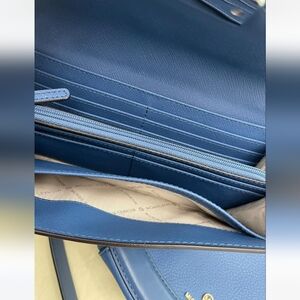 like new, used 1x for an event and sat in dustbag since. Michael kors blue pebbled leather crossbody bag with wallet. absolutely gorgeous. no longer sold. lifestyle collection.