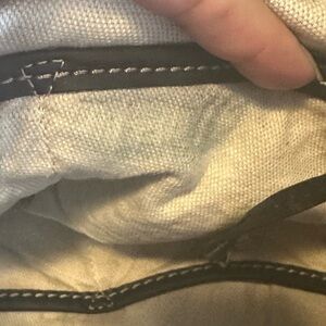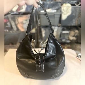 Beautiful hobo bag with black leather and silver studding. some of the hardware is worn but does not affect the bag. Interior has a stain but it was washed a few times but there is a stubborn stain no smell whatsoever.