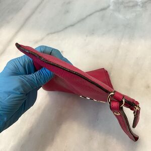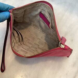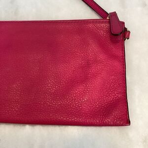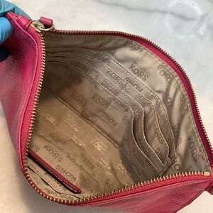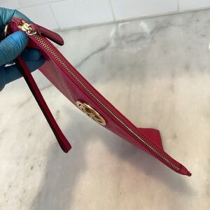 Authentic Michael Kors Pebbled Leather Clutch with Metallic Logo in preloved condition. This elegant Michael Kors clutch in a vibrant pink hue is crafted from high-quality materials and features the iconic metallic MK logo. Its compact design makes it perfect for carrying essentials with style and sophistication. Tan interior with card holder slots and slip pocket. Photos are the best description of this preloved clutch wristlet. Approx. 10" x 5.5" Make an offer!