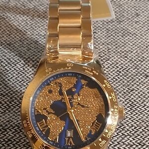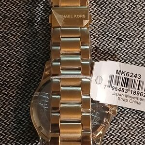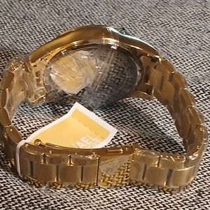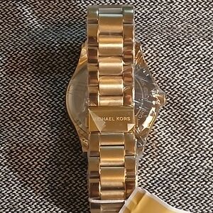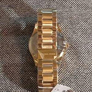 Authentic Michael Kors Layton Blue crystal pave dial gold women's fashion watch. This watch is brand new and is in excellent excellent condition. The watch has a gold band with a beautiful pave crystal dial. The watch has a 44mm case and will fit upto an 8.66 inch wrist. Behind the continents it has a beautiful blue color. It does come with the box, paperwork and tags along with the bag. It still has the plastic wrapping on it. Please go check out the pictures to see for yourself. If you have any questions please let me know thanks