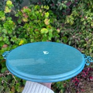 Mid-Century Vintage Round Moire Glaze Kyes Tray in Glazed Blue