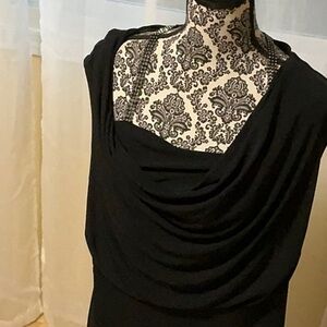 This elegant black evening gown is perfect for any formal occasion. Its sleek design offers a timeless look that is both sophisticated and stylish. Knee length new with tags size 20 w nice silver details