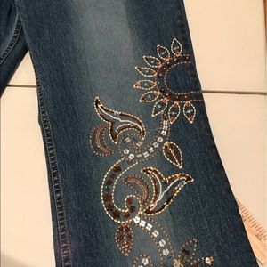 Midnight Velvet size 12 high waist wide leg dark wash jeans embellished with beads and sequins