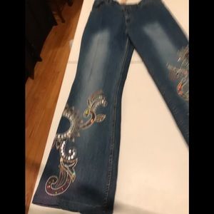 Midnight Velvet size 12 jeans embellished high rise wide leg with stretch