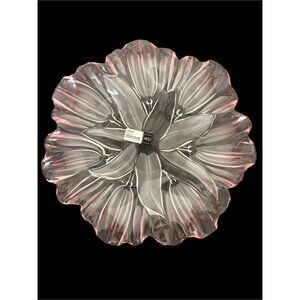 Mikasa Waltherglas Pink Frosted Tulip Crystal Serving Platter Germany Vtg NEW