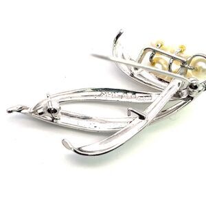 This elegant Authentic Mikimoto Silver brooch has 5 Saltwater Akoya Cultured Pearls size is 6.40-5.30 mm and a weight of 5.7 grams.
