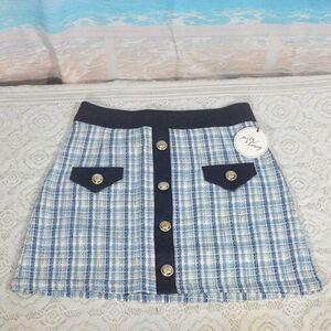 Milk & Honey Tweed Mini Kirt with Faux Leather Detail and Silver Tone Buttons