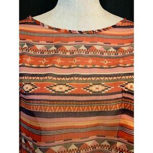 Millau Womens Red Orange Ivory Short Sleeve Crop Top Oversized Sheer Small. Shipped with USPS First Class Package. Length 17.5, bust 52, waist and hips open. Measurements in inches. Perfect condition. No rips holes stains or fading. Smoke and pet free home. Fast shipping.