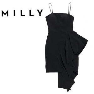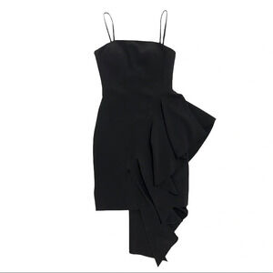Milly Asymmetrical Ruffle Spaghetti Strap Black Dress Stretch Cocktail Size 0