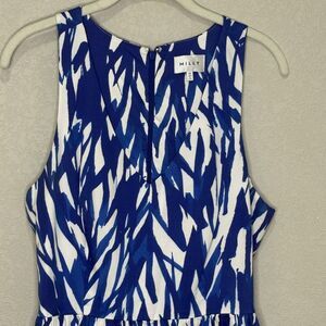 Milly Dress Isadora Size 10 Blue White Abstract Sleeveless Fit Flare Made USA