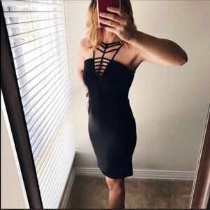 Club L V Neck Cage Detail Mini Dress Black Women's