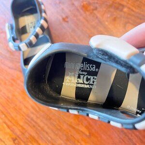 Mini Melissa Alice in Wonderland Cheshire Cat Maryjane Shoes- Size 6. In very good pre-owned condition. Hook/loop closure is in excellent condition.
