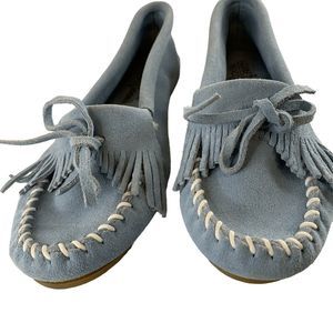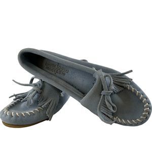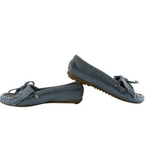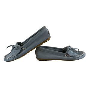Step into comfort with Minnetonka's stylish blue moccasins. Perfect for casual outings, these shoes offer both elegance and ease.