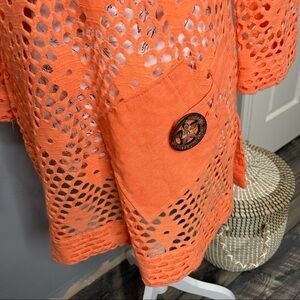 Mirror Image Neon Orange Artsy Sheer Perforated 3/4 Sleeve Size Medium Top