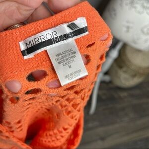 Mirror Image Neon Orange Artsy Sheer Perforated 3/4 Sleeve Size Medium Top.
