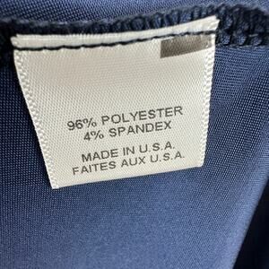 Slips on over head - V-neck - Spaghetti straps - Racerback - 96% polyester, 4% spandex - Dry clean - Made in the USA of imported fabric