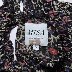 • Good Condition. There’s many pulls throughout the dress, most being at the front side of the skirt. This flaw is common with Misa. The intricate floral pattern makes these pulls on the fabric almost unnoticeable.