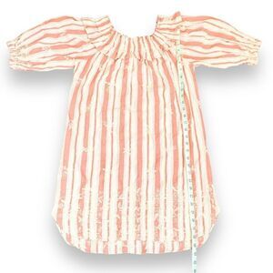 Misa Los Angeles Embroidered Mini Off Shoulder Tunic Dress Coral Red White Striped Women’s Size S
